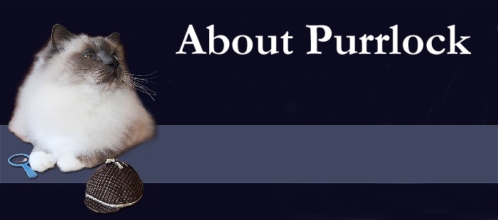 The "real" Purrlock Holmes, is one of my own cats. Only his name is "Coolcat". This is his picture at the top of the page, and on the book. Coolcat is a purebred neutered Birman cat, that I show as often as I have the opportunity. He has a great personality, and has become widely known for his antics in the show ring.